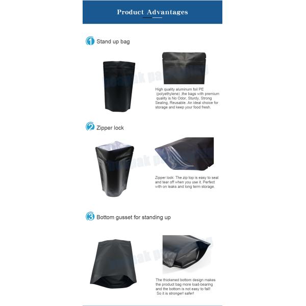 Stock Aluminium Foil Zipper Doypack Black Matte Stand Up Pouch Images |